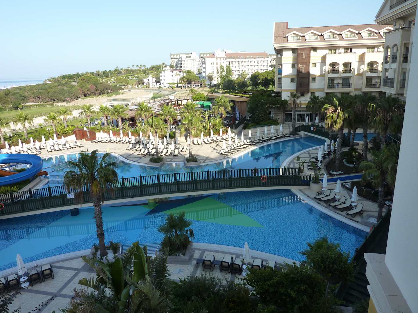 Blick vom Zimmer auf die PoollandschaftBlick vom Zimmer auf die Poollandschaft