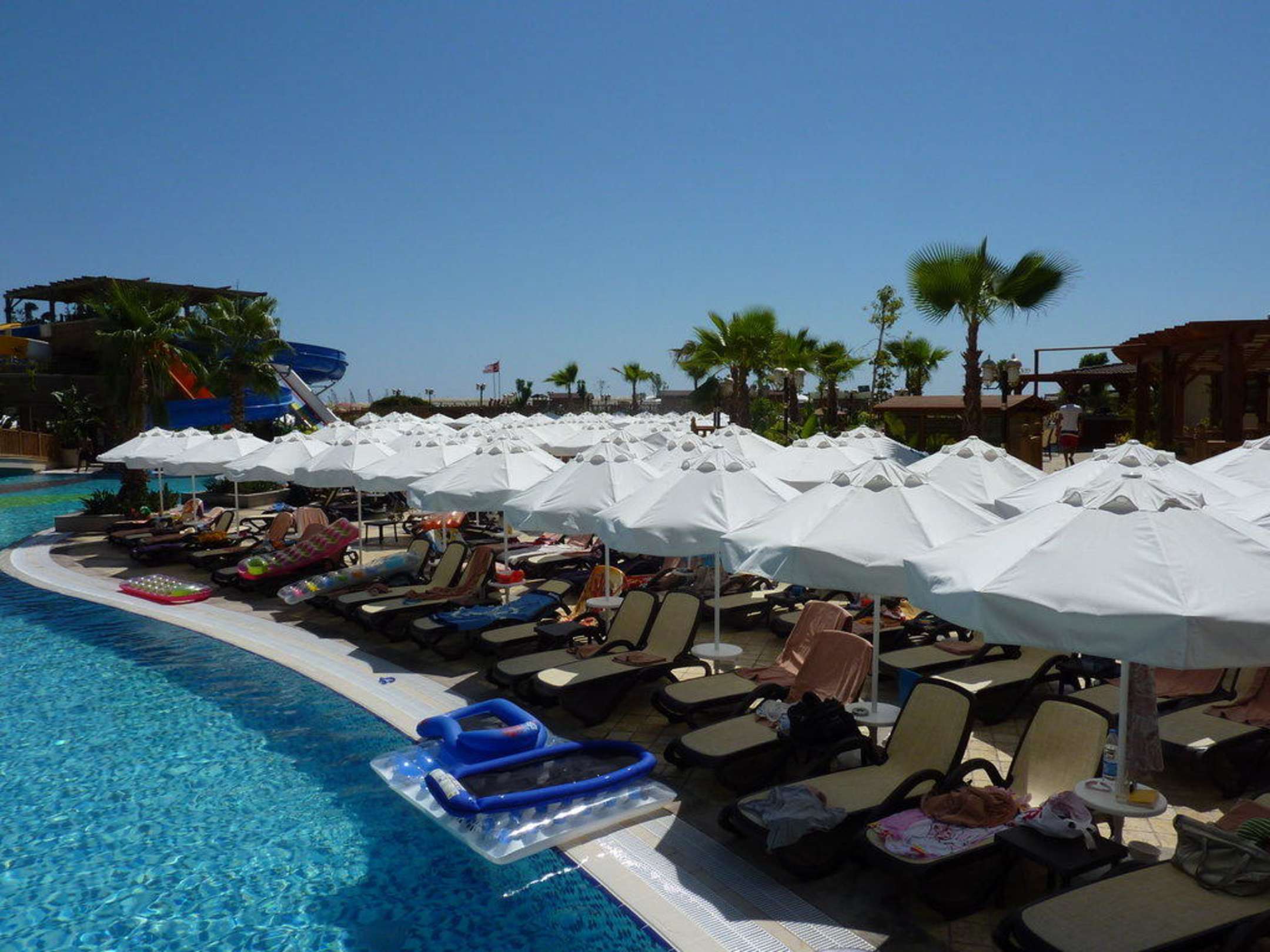 Sehr eng gestellte Liegen am Pool