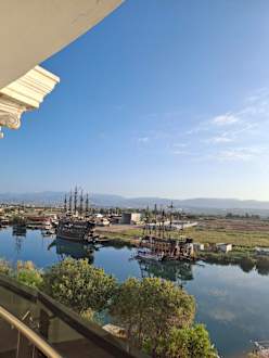Auf den Fluß Manavgat mit dem Taurusgebirge im Hintergrund.