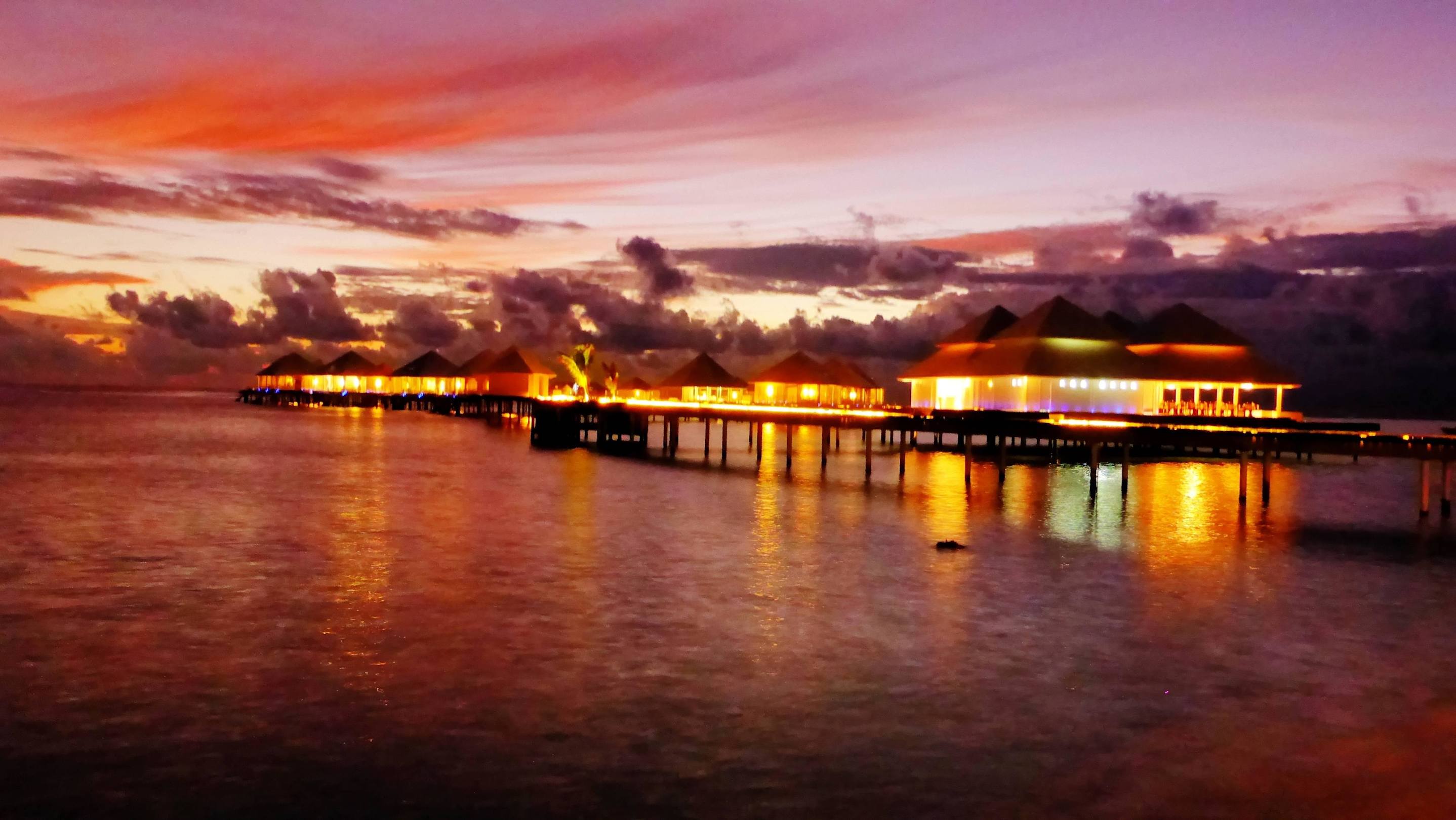 Overwater Restaurant bei Sonnenuntergang