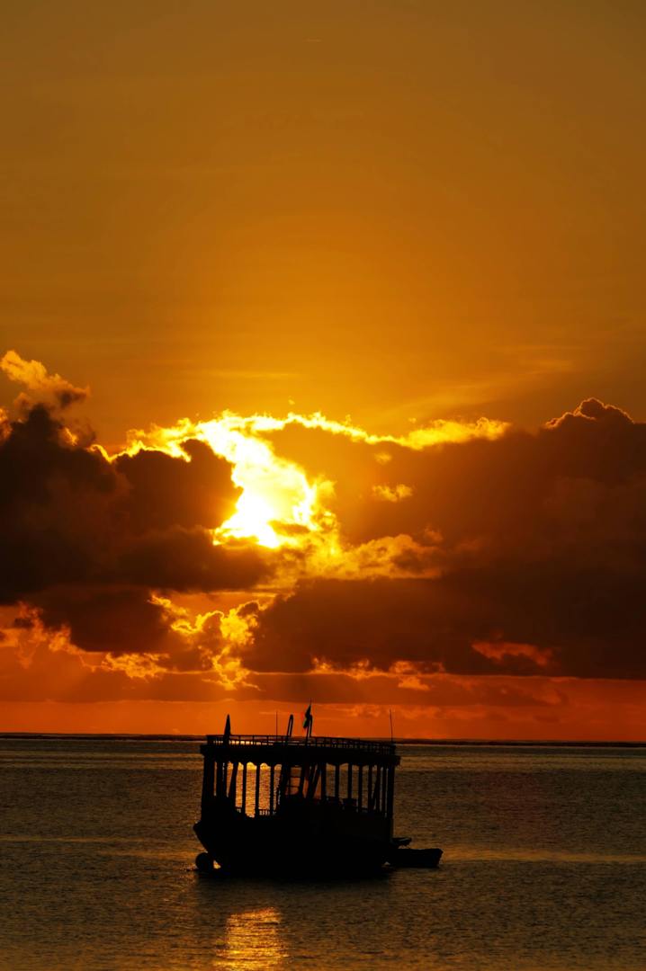 Dhoni bei Sonnenuntergang