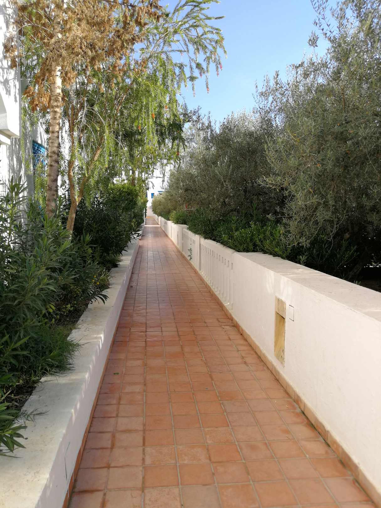 Weg zwischen Zimmern und Pool