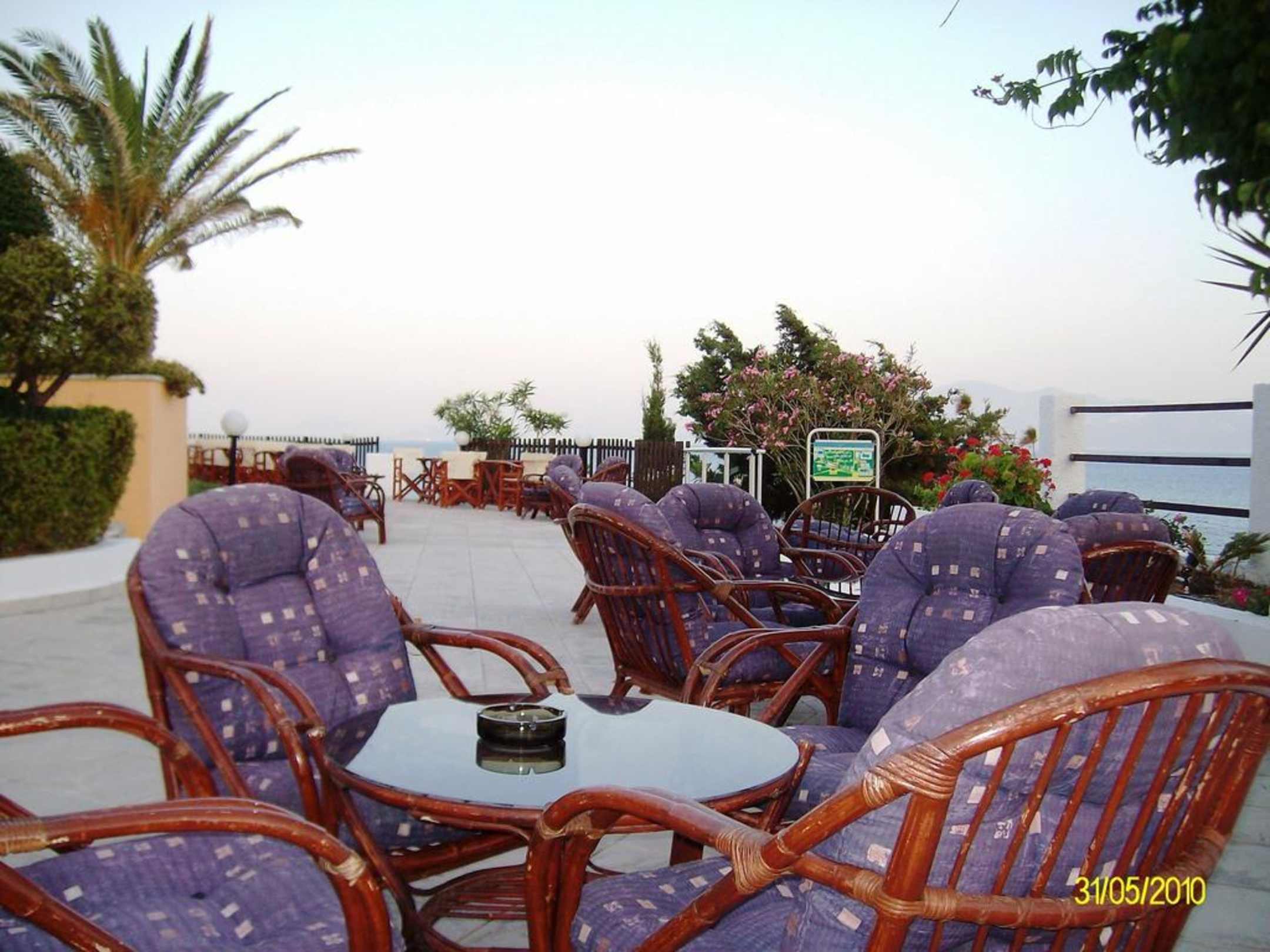 Sitzgruppe mit Blick auf Garten und Meer