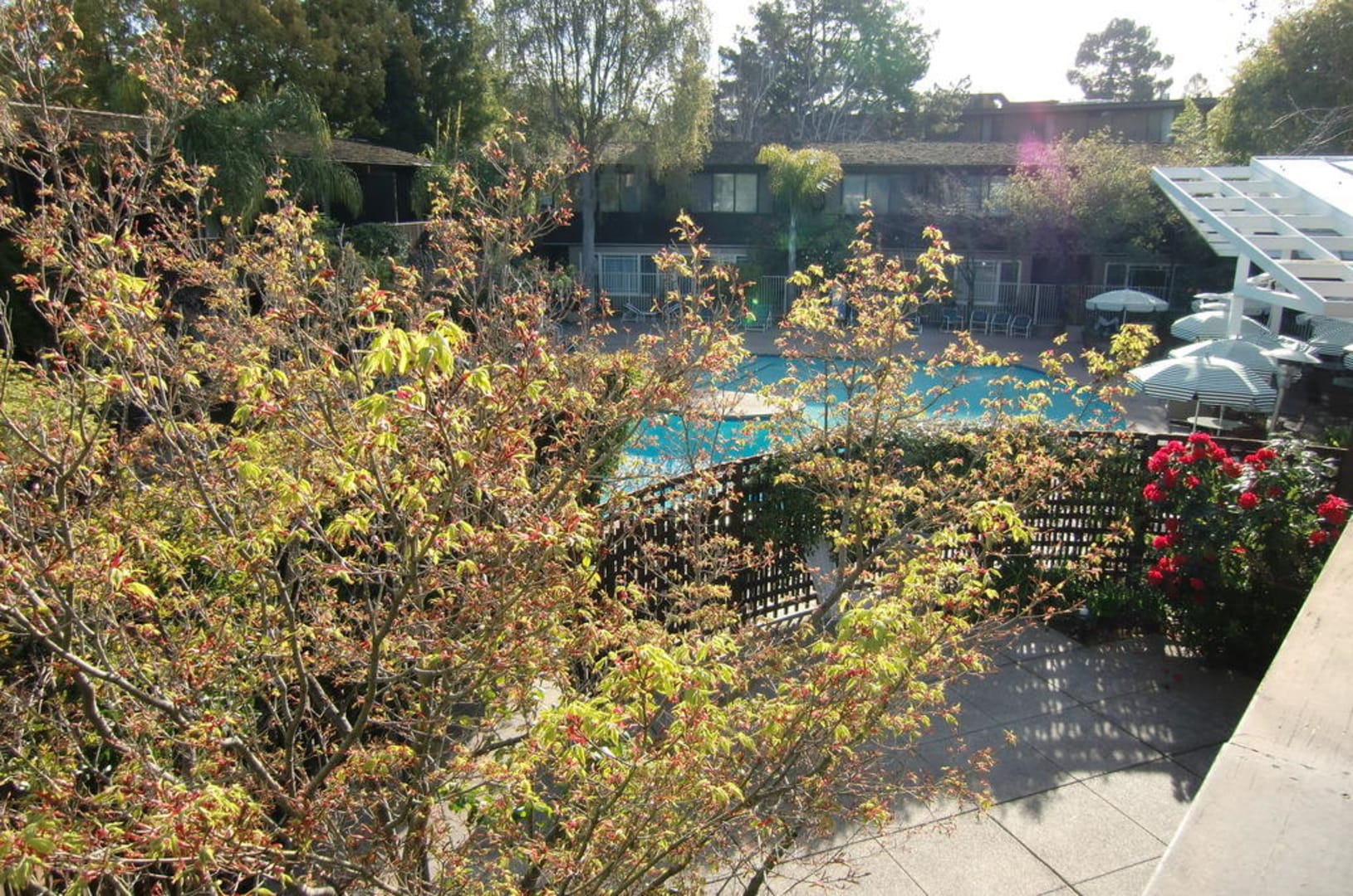 Blick vom Balkon auf den Pool