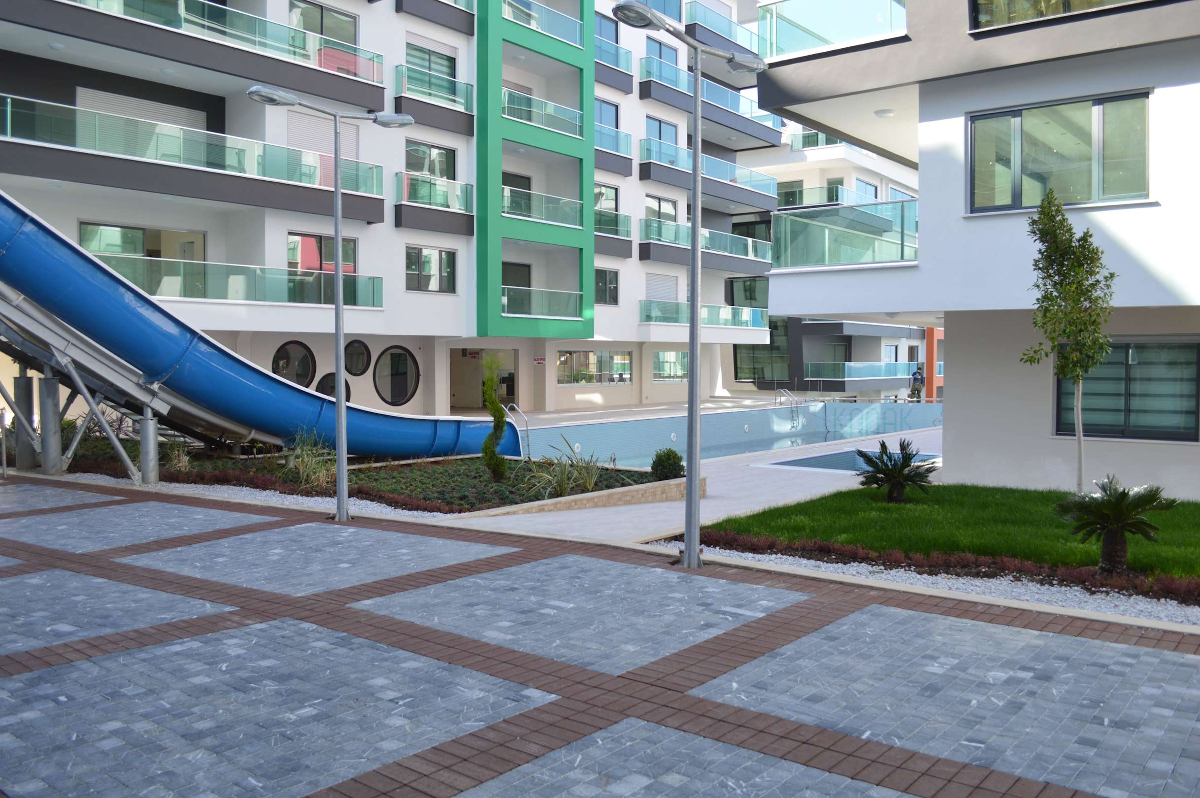 Outdoor pool slides