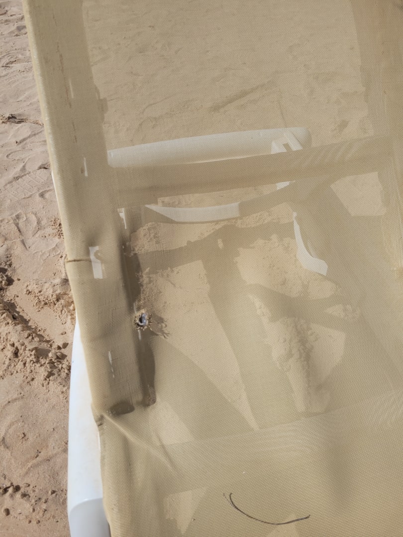 Kaputte Liegen am Strand