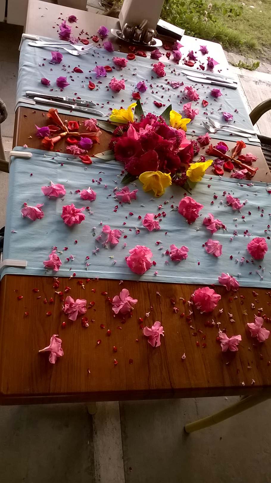 Blumengeschmückter Tisch beim Abschied.