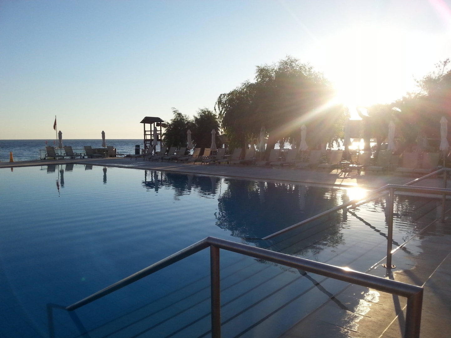 Pool zum Abend mit Meer im Hintergrund!
