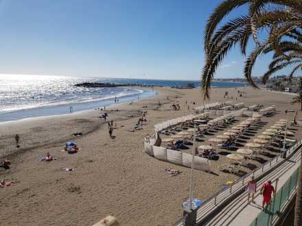 Blick zum Strand von der Hotel-Terrasse