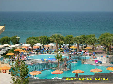 Vom Zimmer/Balkon auf die Poollandschaft
