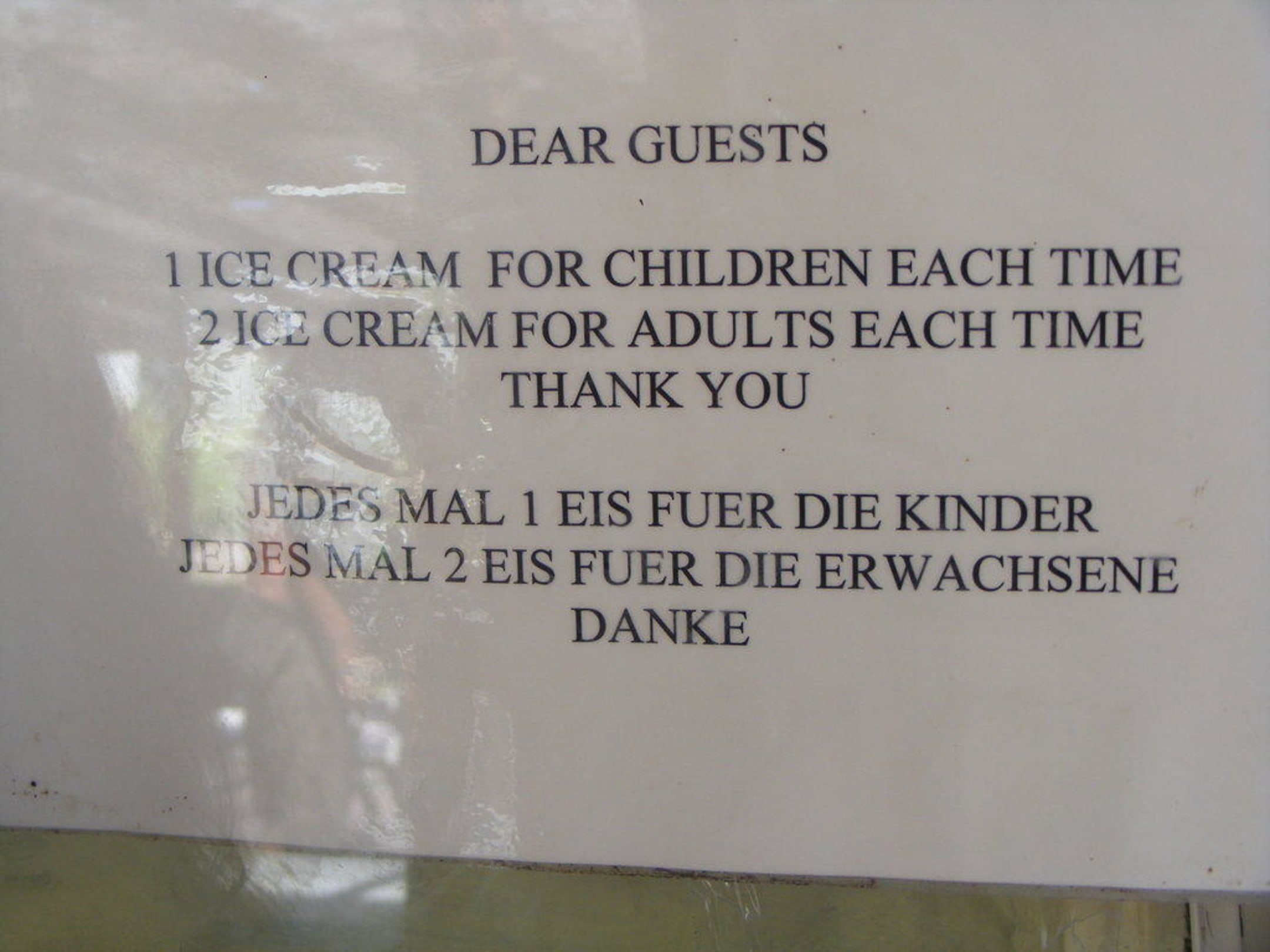 EisrationierungDie letzten Tagen wurde das Eis( 4 Sorten) pro Person zugeteilt, trotz