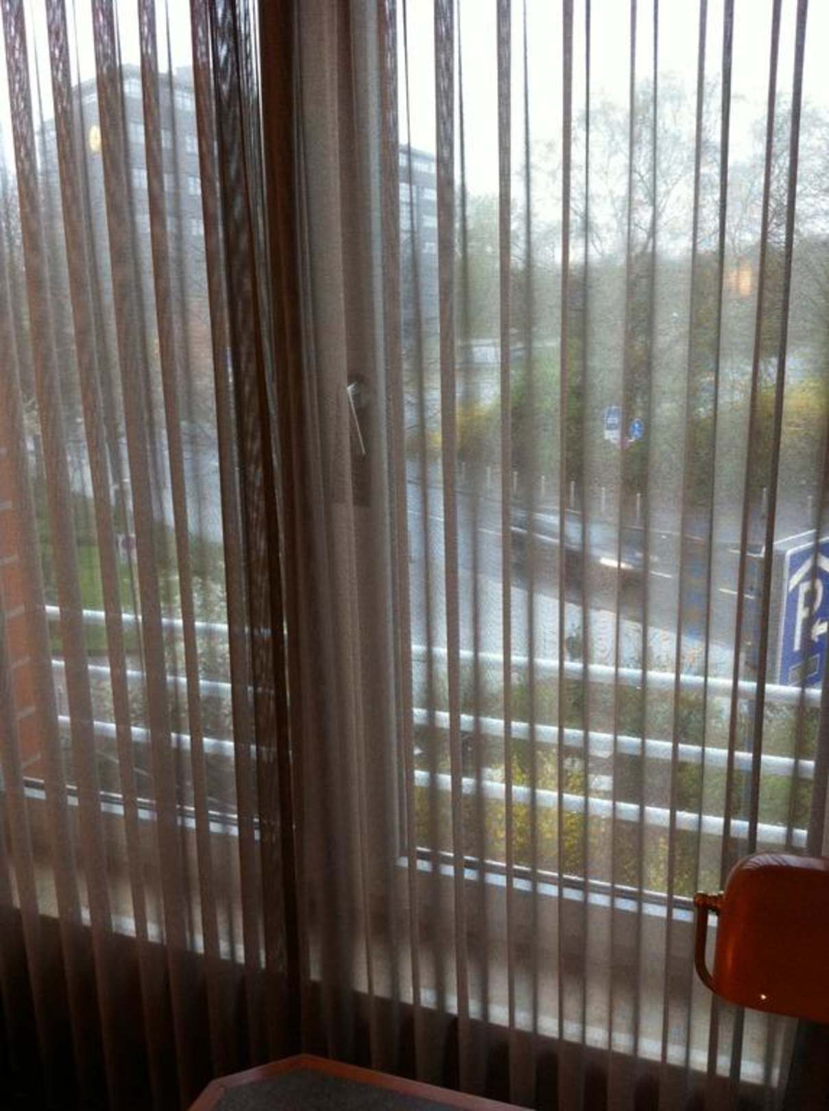 Oh, ein Fenster. Draußen die Straße