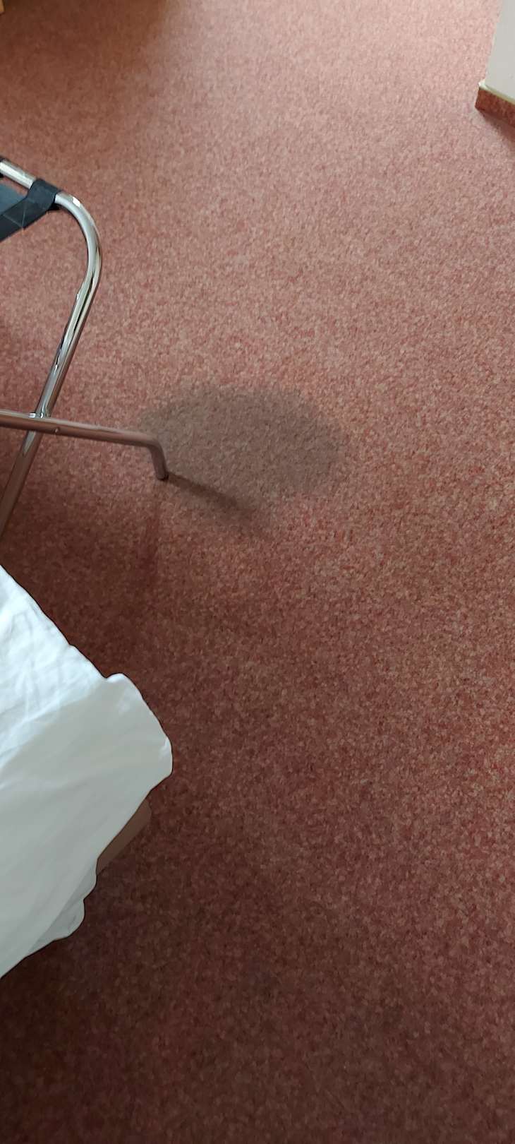 Große schwarzer Flecken auf dem Teppich vorm Bett
