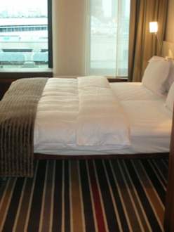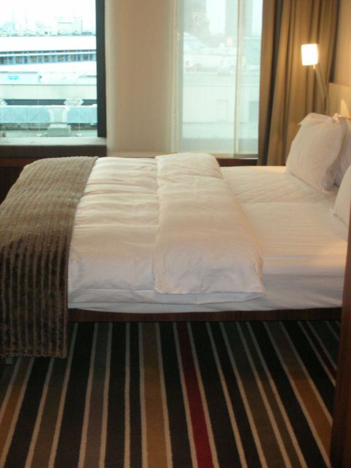 Das ZimmerDas Zimmer vom Badezimmer aus gesehen. Im Hintergrund sieht man schon die schönen bodentiefen Fenster.