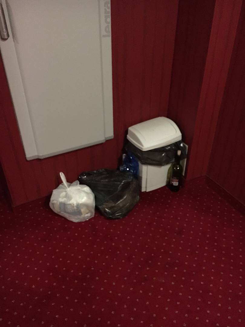 Müllecke im Flur zu den Zimmern