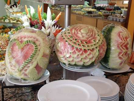 Geschnitzte Figuren am Buffet