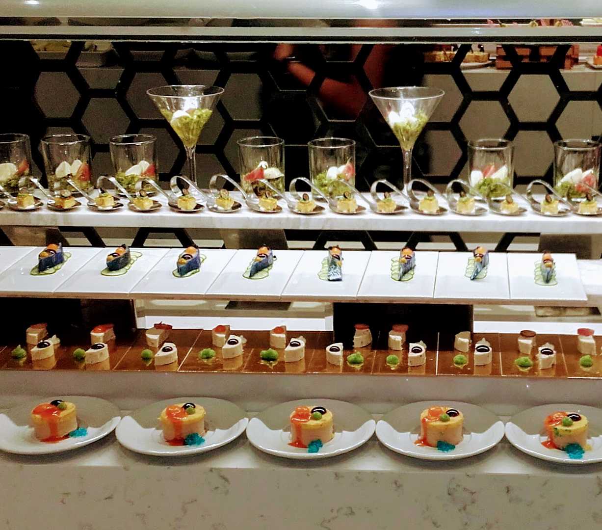 Kleinigkeiten am Buffet mit Fisch und Kaviar