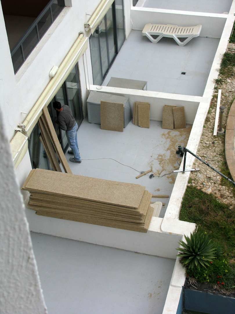 Holzzuschnitte auf der Terrasse