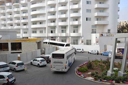 Ausblick auf die Zufahrt mit vielen Bussen am Tag.