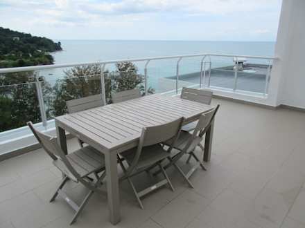 Terrasse mit Blick auf das Meer.