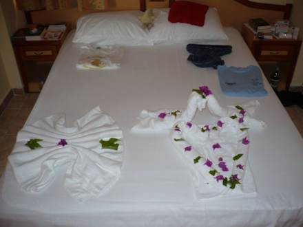 Unser Bett, ganz lieb gestaltet von der Putzfrau