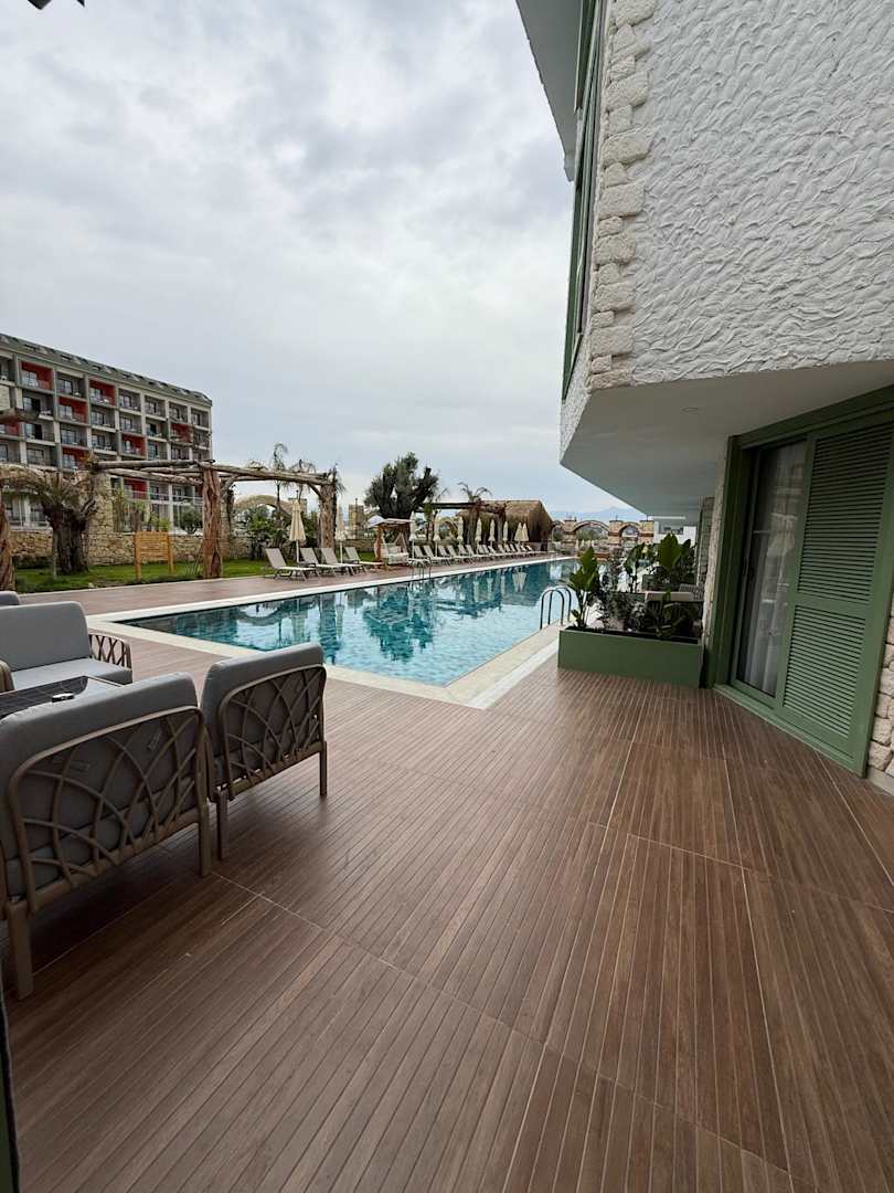Die Sicht auf den Pool vom Swimup Zimmer
