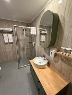 Das Bad vom Jacuzzi Zimmer