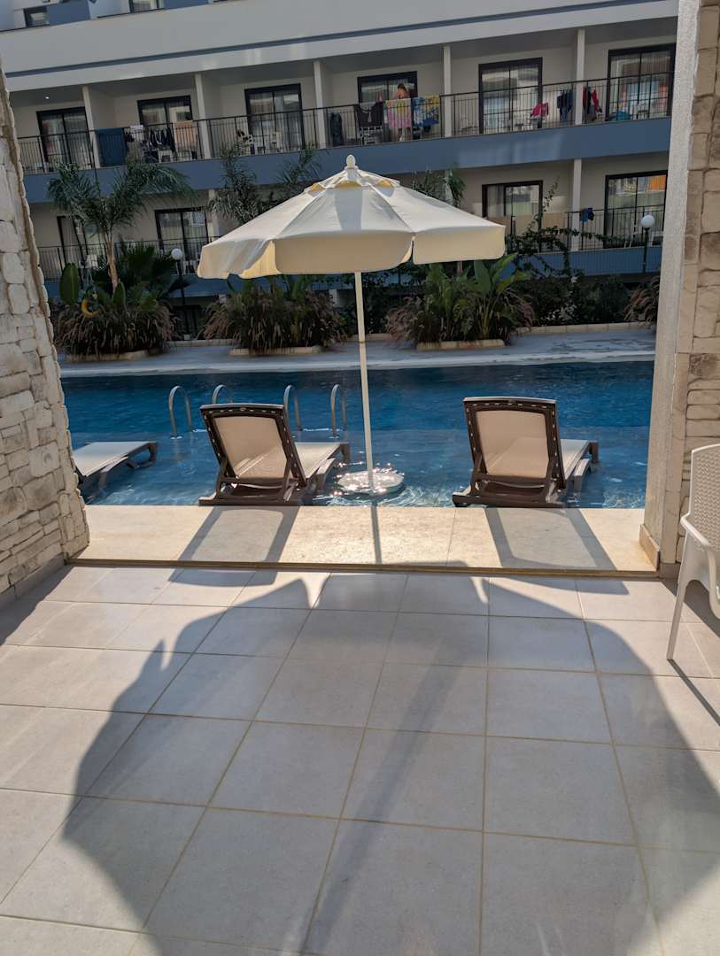 Schön auf dem Präsentierteller vom Nachbarhotel. Das sind die Swimup Zimmer