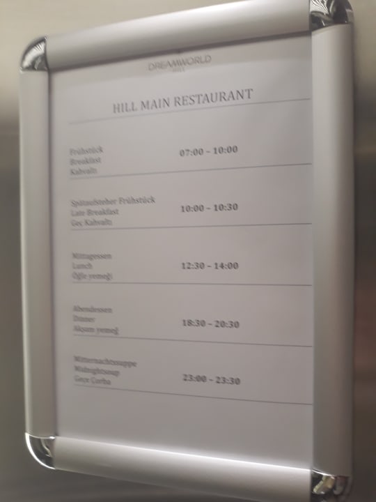 Das sind die Öffnungszeiten des Dream World Hill Main Restaurant