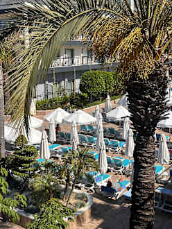 Der Blick vom Balkon auf die gepflegte Pool Landschaft ❤️❤️❤️❤️