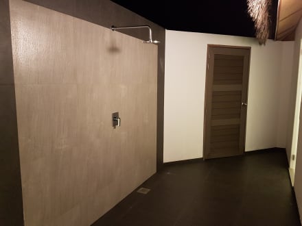 Außendusche im Wasserbungalow