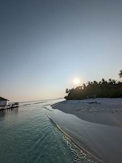 Dies war der Ausblick vom Steg von/zu den Wasserbungalows auf den Strand.