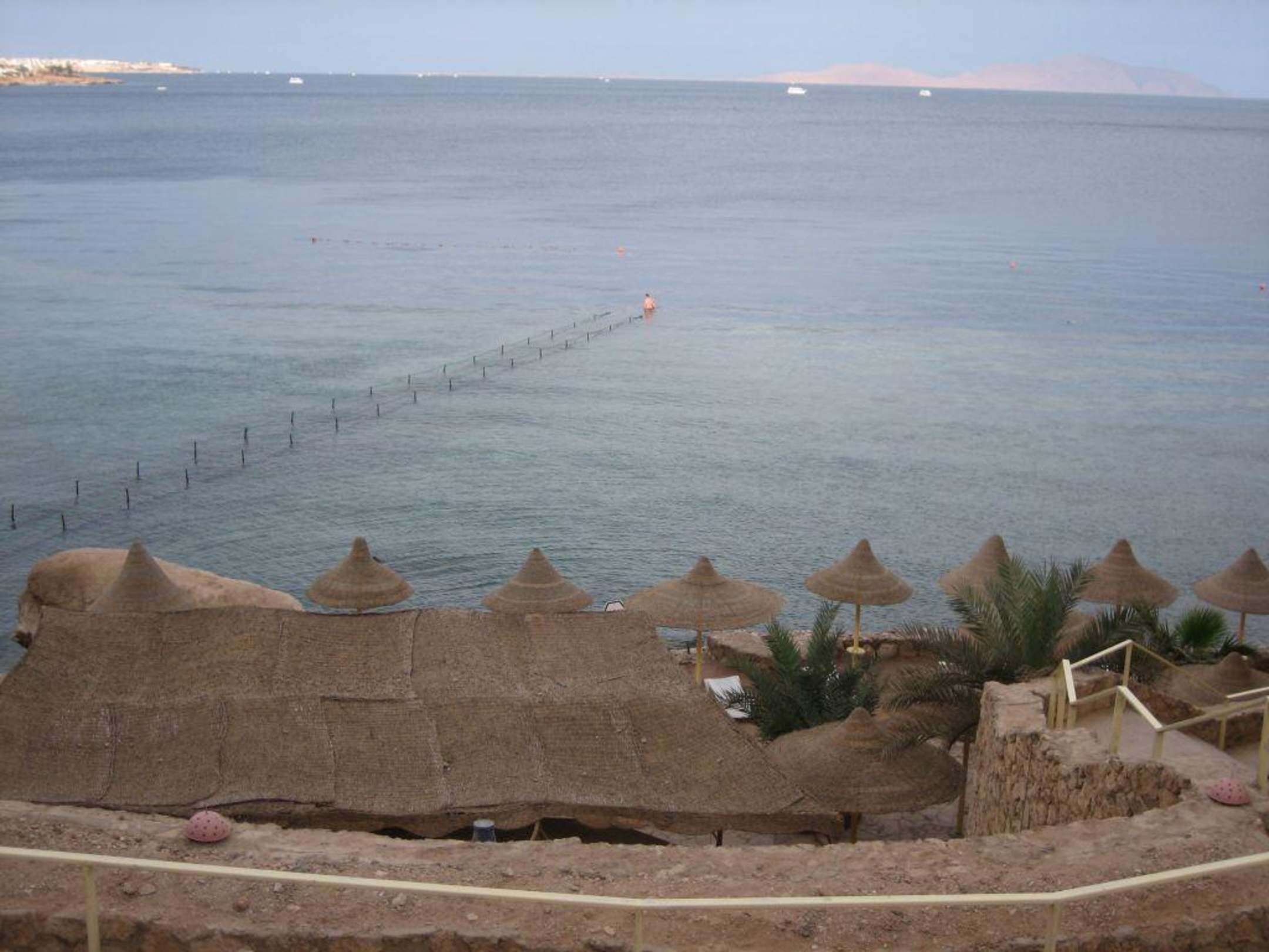 Blick von Plateau über das Meer mit einem der drei Badestege!