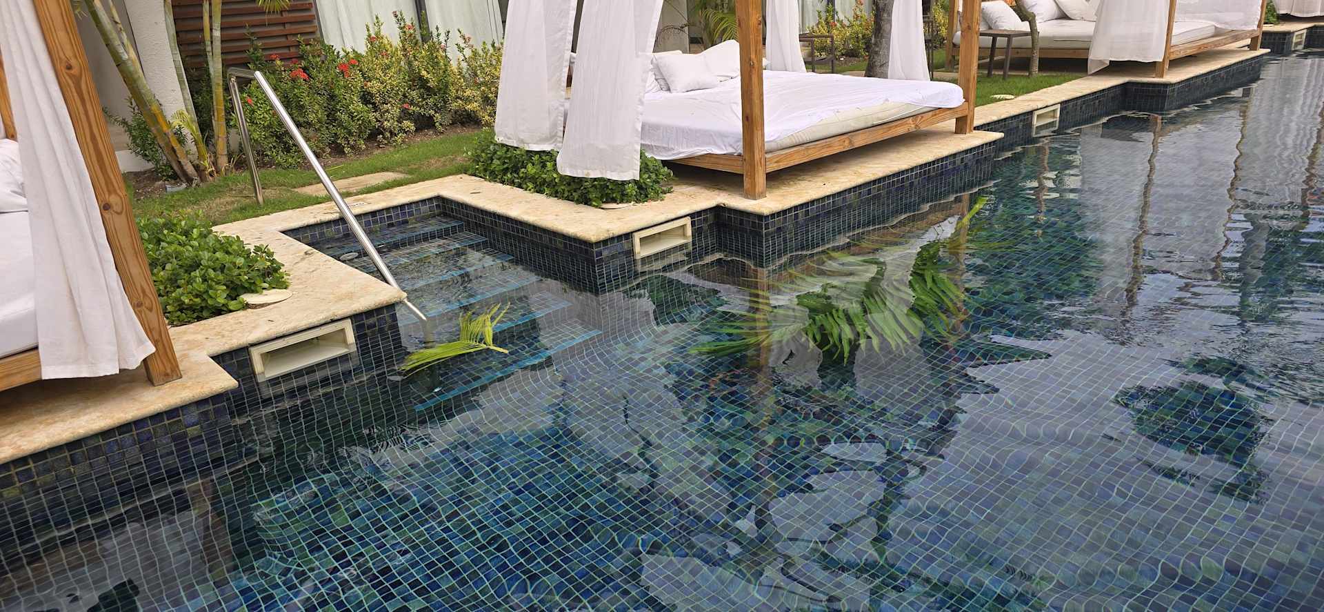 abgeschnittene Palmenwedel im Pool