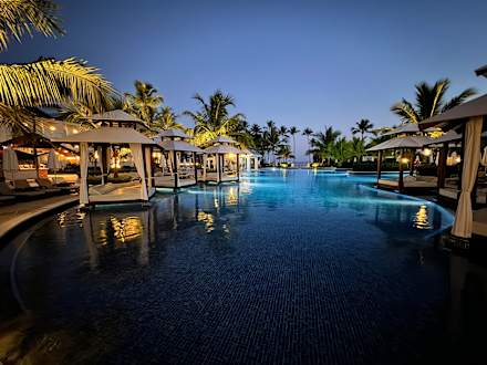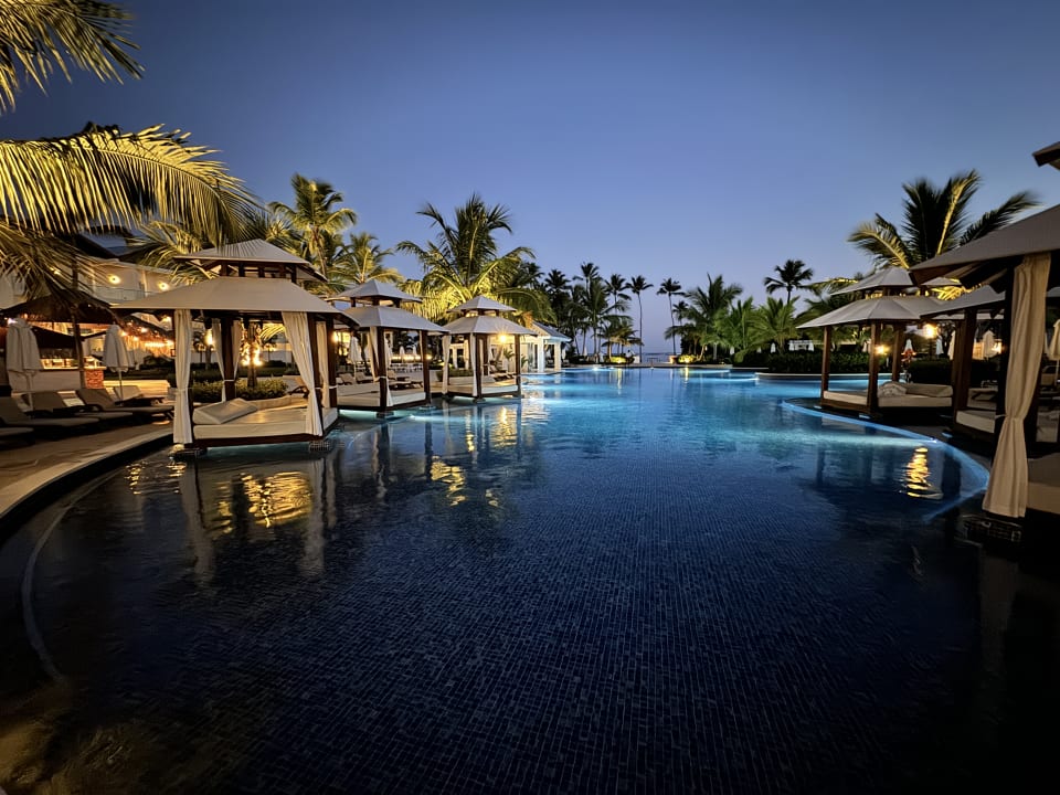 Hauptpool Richtung Strand fotografiert bei Nacht