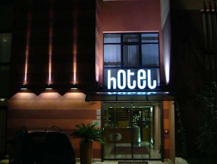 Hoteleingang bei Nacht