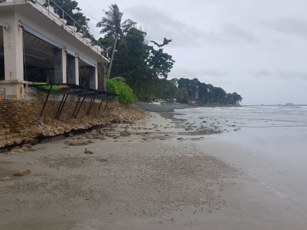 StrandLinks das Hotelgebäude, hier das Restaurant - kurz vor Wasserhöchststand