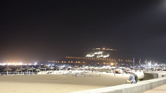 Strand bei Nacht. Höhe RIU-Hotel