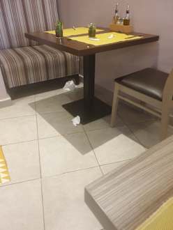GastroZustand der Tische, Gäste mussten ihn selbst saubermachen, obwohl Kellner immer wieder lang gegangen sind