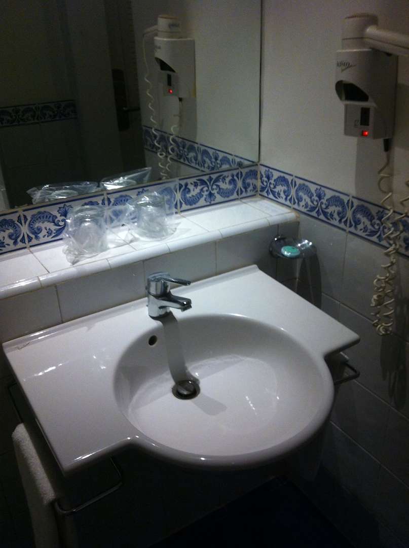 Altes Waschbecken, alter Fön