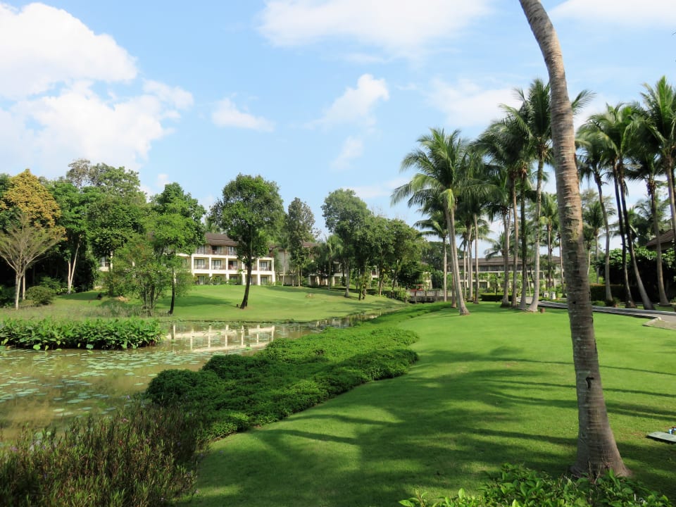Gartenanlage zwischen Strand und Hotelgebäuden