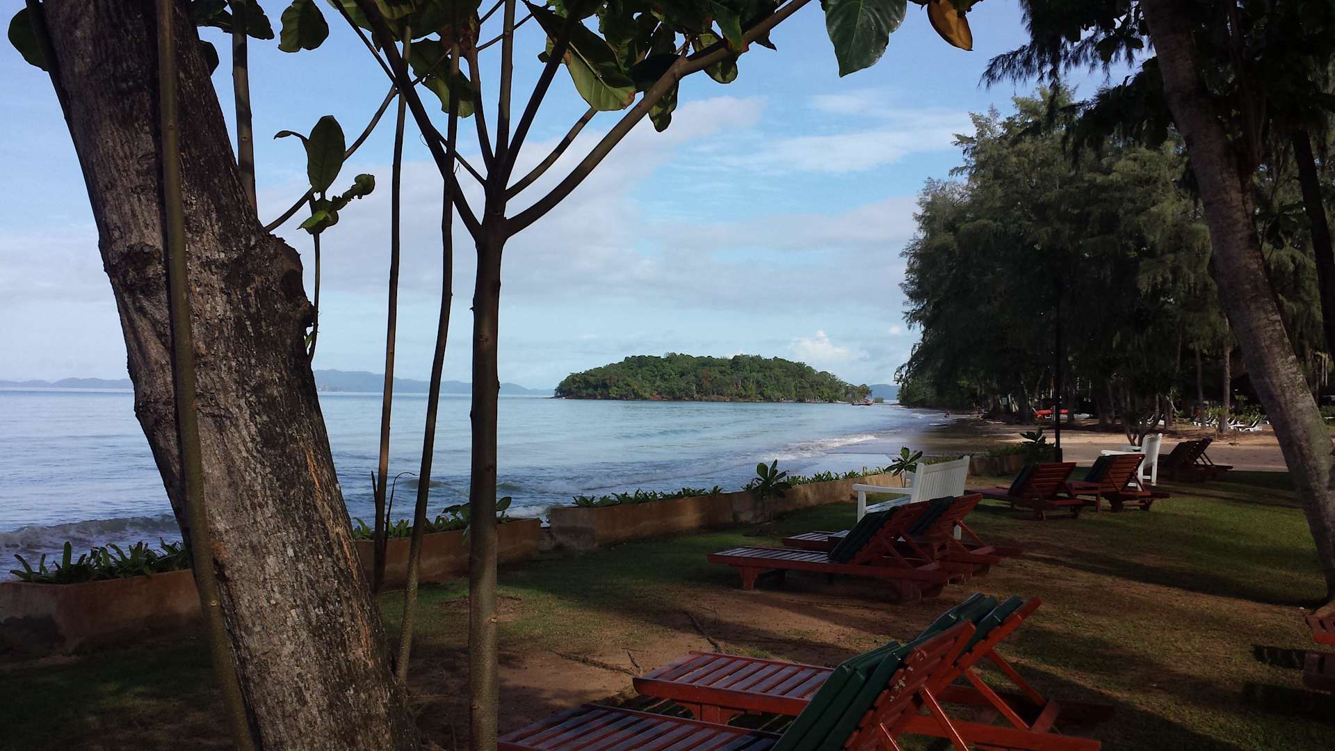 Blick vom Liegestuhl zum Strand Dusit Thani Krabi Beach Resort
