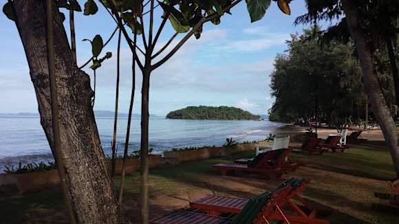 Blick vom Liegestuhl zum Strand