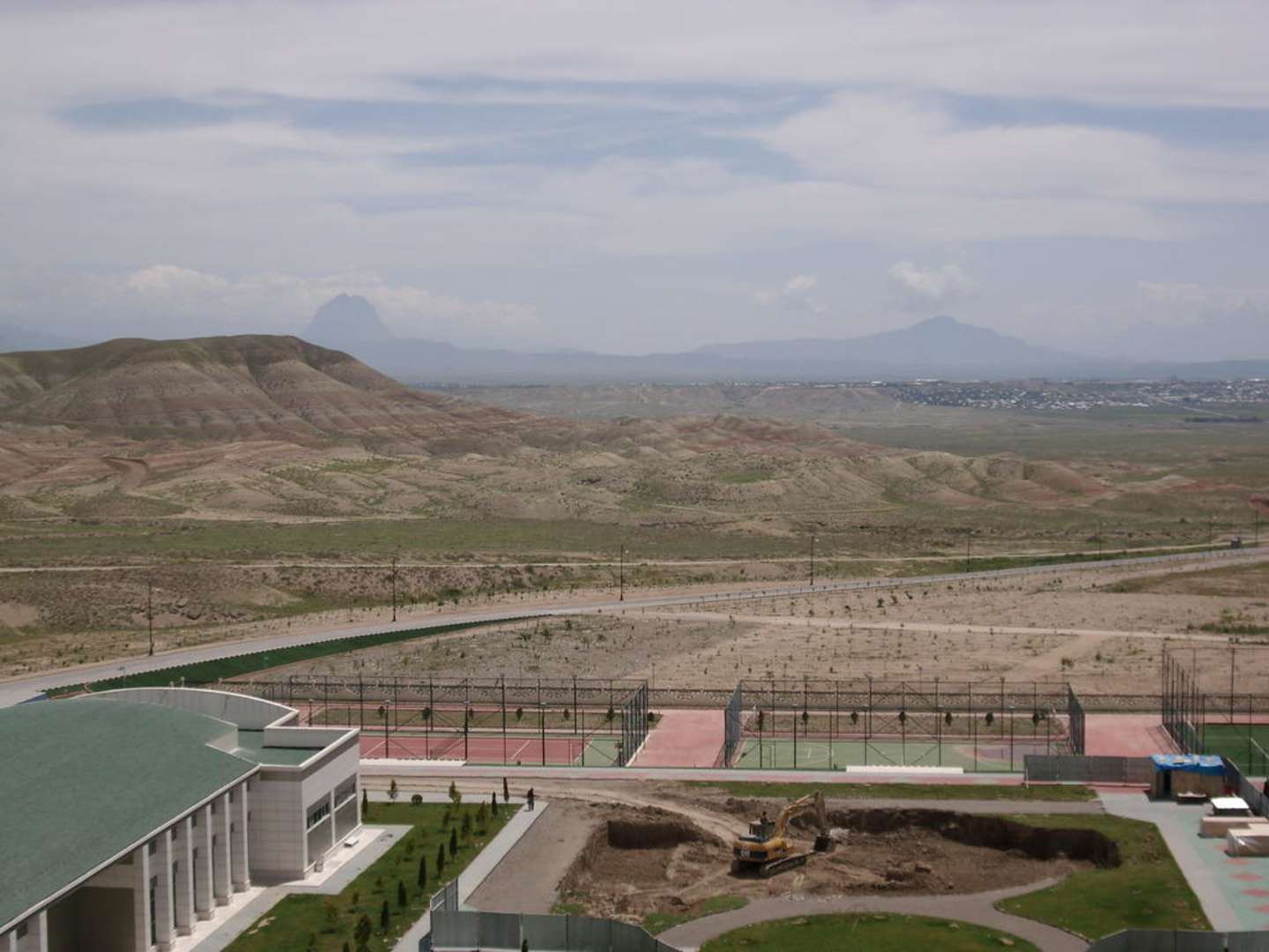 Blick aus dem Hotel über die Hotelanlage mit Tennis- und Fußballplatz
