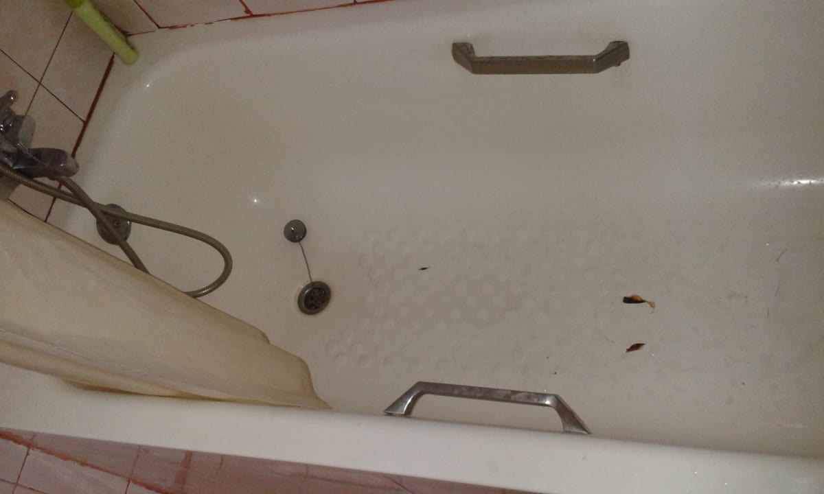 ZimmerWanne mit Löchern u Rissen wurden mit Fugenfarbe zugeschmiert. Bause auf Thai Gardemas 1,50m.