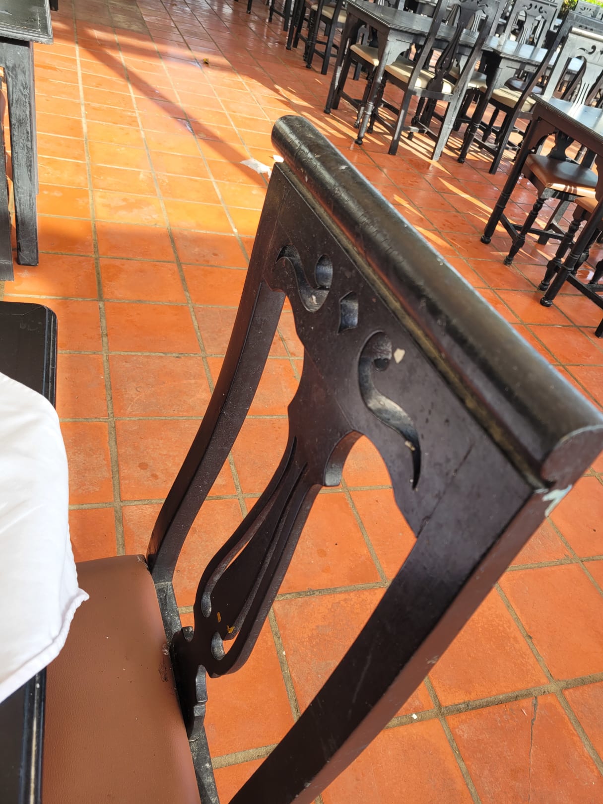 verschmutzte oder defekte Stühle ! So ekelhaft das man diese beim anfassen glebrige Hände hatte!