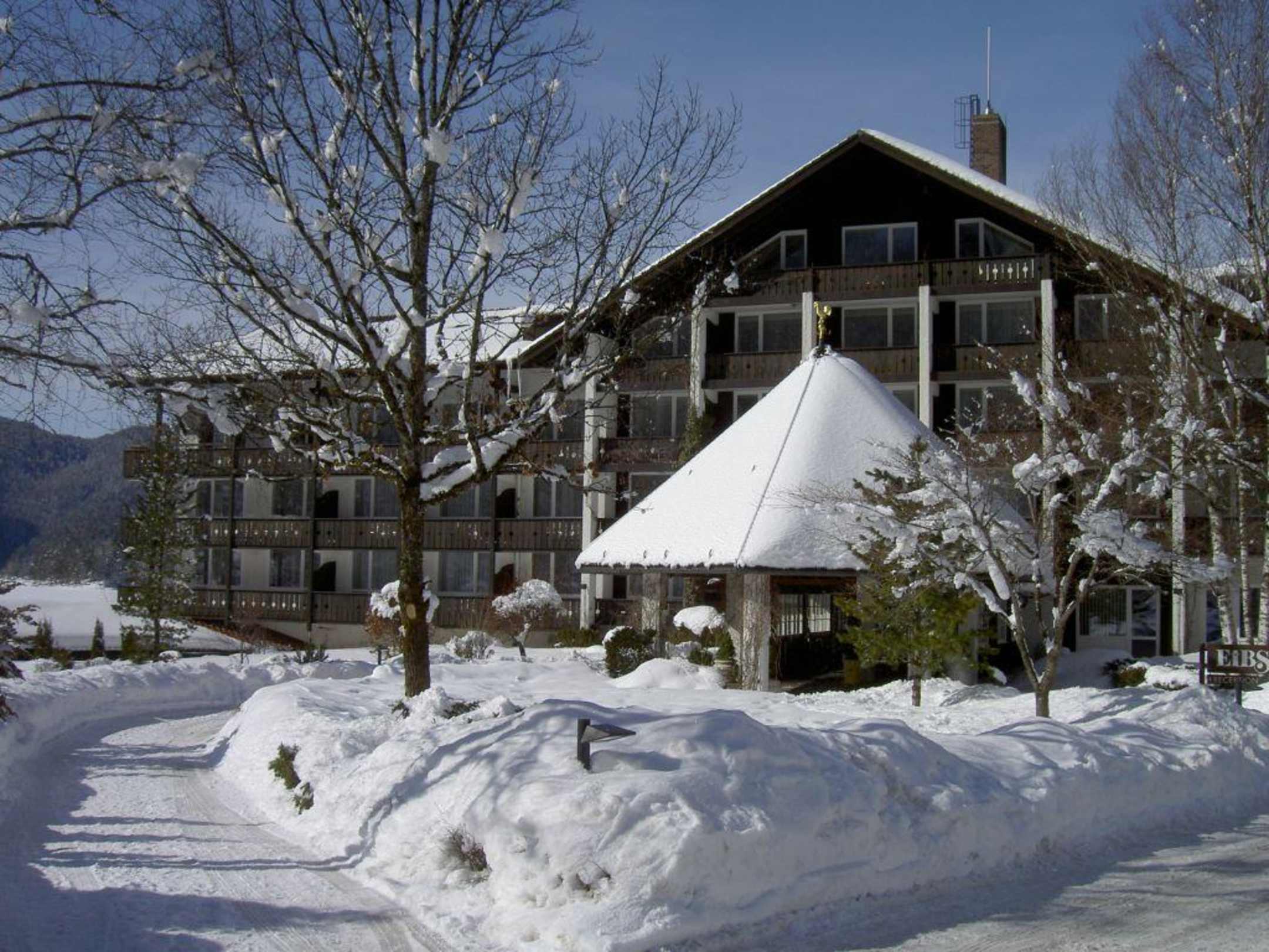 Winterliche Frontansicht des Hotel Eibsee