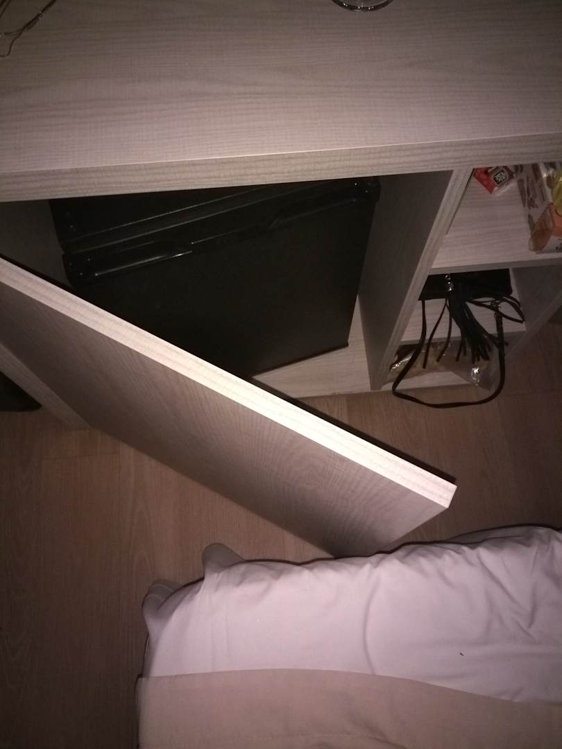 ZimmerZimmer ist nicht ganz so groß wie erwartet. Das Bett ist nicht weit genug von dem Schrank entfernt um diesen zu öffnen