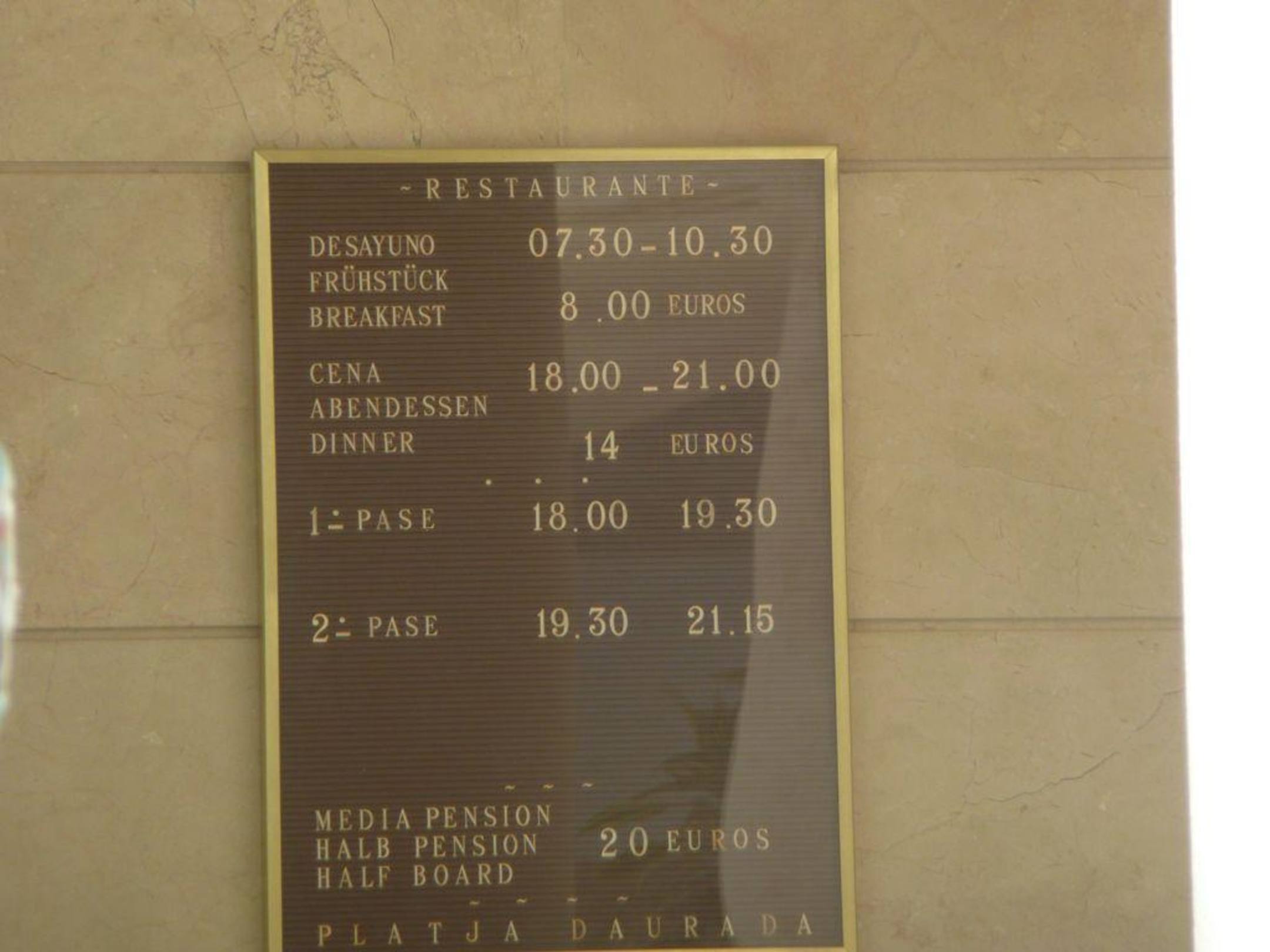 Tablica informacyjna przed wejściem do restauracji.