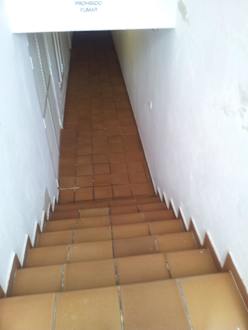 Treppe zur Toilette, verdreckte Fliesen